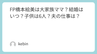 今回は、FP(ファイナンシャルプランナー)として活躍している橋本絵美さん!はしもとFPコンサルティングオフィスの代表を務めています!大家族ママとしても奮闘しているようです!そんな橋本さんの結婚はいつだったのか?また、子供は6人と言われていま...