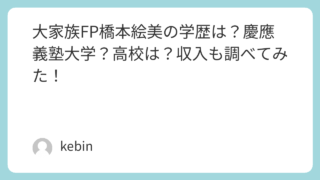 今回は、6人の子供のママでFP(ファイナンシャルプランナー)として、はしもとFPコンサルティングオフィスの、代表を務める橋本絵美さんについて!慶應義塾大学卒業のようですが、高校などの学歴はどうなっているのでしょうか?また、FPとして会社を経...